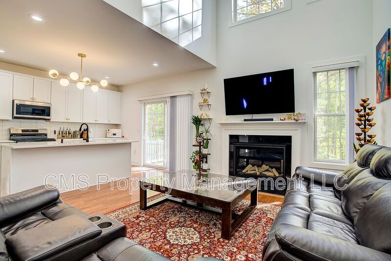 The main level features a bright, open-concept kitchen complete with a center island and sliding doors that open to a private back deck—perfect for relaxing or entertaining. The highlight of the living space is a dramatic two-story family room with a fireplace, creating a warm and inviting atmosphere.